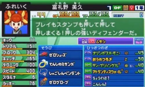 皆さんこんにちは、井上先生です。 今回紹介する選手はこちら、ふれいくです。 ブロックとスピードが高い女性DFです。 コマンドバトルには影響しないものの、高スピードはボール運びやパスカットなど色々な場面で応用が効くので想像以上の強さと使いやすさが…